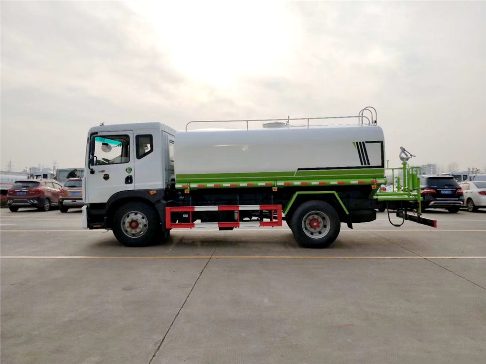 其他 | 1,该车仅选用3950轴距,罐体有效容积为11.66立方米。2,当选装带喷雾机组平台时,罐体外形尺寸(长×长轴×短轴)/整车高为(mm):4200×2400×1700/3400;当选装普通后平台时,罐体外形尺寸(长×长轴×短轴)/整车高为(mm):4500×2400×1600/3200。3,防护材料:Q235B碳钢,连接方式:左右侧面防护与副梁均采用焊接连接,后下部防护与车架采用焊接连接,后部防护断面尺寸(mm):150×50,后部防护离地高度(mm):480。4,ABS系统生产厂家,型号 :焦作博瑞克控制技术有限公司,J ABS。5,专用装置:罐体,主要用于路面洒水及园林绿化。6、随底盘配置选装底盘部件安装位置。 |