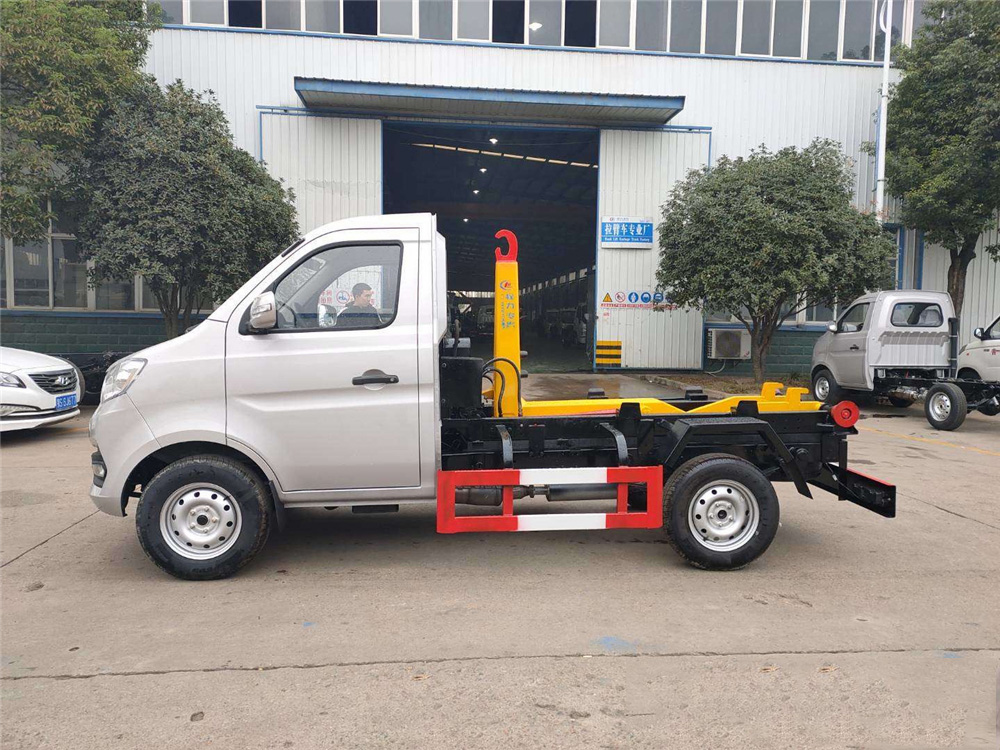 国六·长安勾臂垃圾车,匹配垃圾箱容积3-4立方,2990轴距,重庆渝安DK15C国六汽油发动机82千瓦112马力,5档变速箱,前盘后鼓刹车,带ABS,165R14LT 8PR真空胎(后双轮),后视镜带转向灯,加强型直通大梁,带原厂制冷空调,原厂电子方向助力,原厂独有取力器。