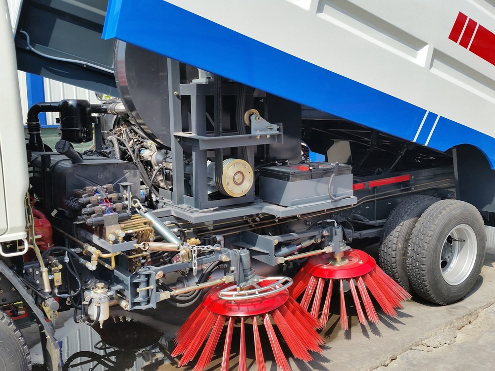 2、采用副发动机专门驱动风机和液压系统,保证行驶过程中能继续工作,保证清扫过程的连续性。