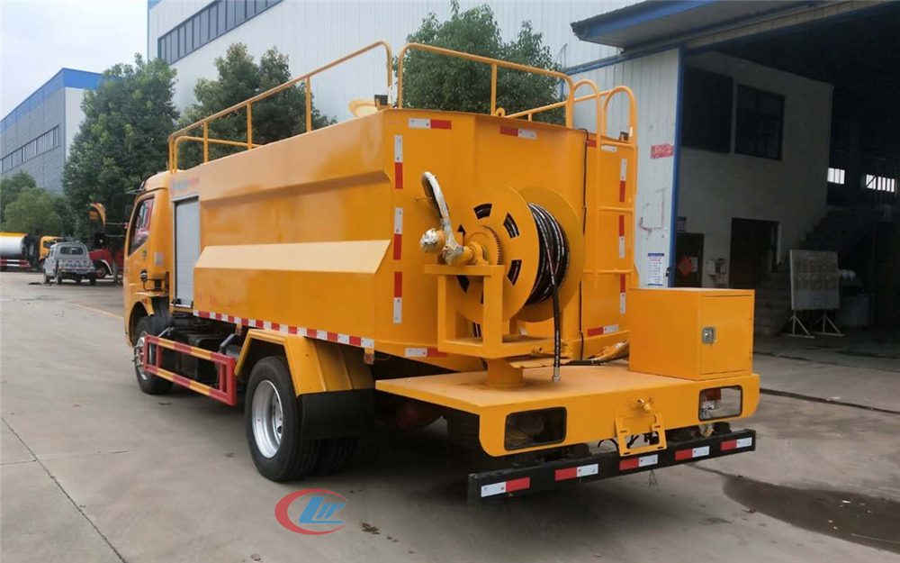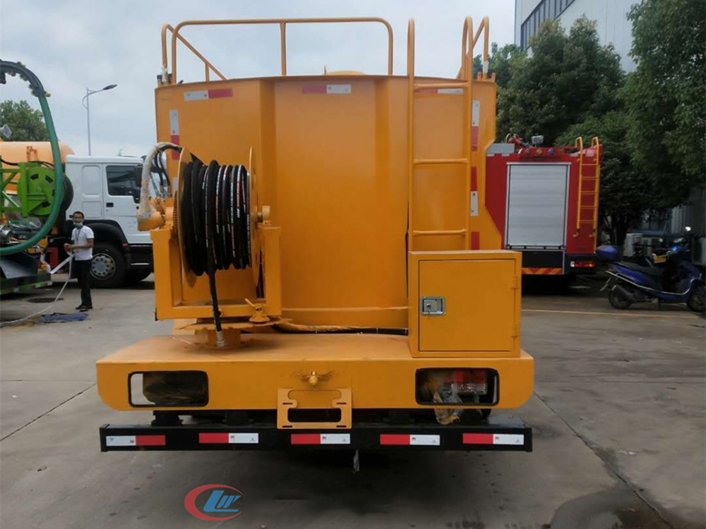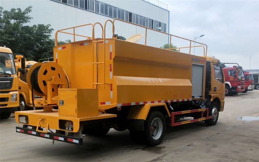 水罐:采用Q235武钢4MM厚碳钢板,高压清洗部分采用进口品孚,双耀等品牌,大流量,高压泵,配液压达回位卷盘及60米直径19-25mm高压管,10个标配喷头。