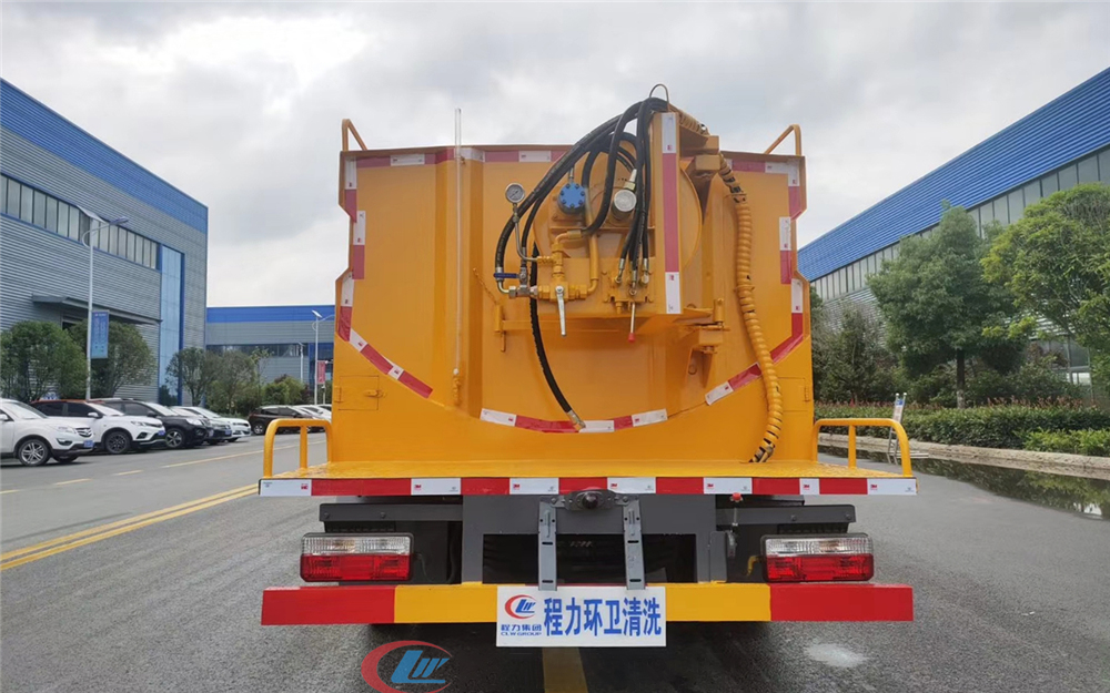 水罐:采用Q235武钢4MM厚碳钢板,高压清洗部分采用进口品孚,双耀等品牌,大流量,高压泵,配液压达回位卷盘及60米直径19-25mm高压管,10个标配喷头。