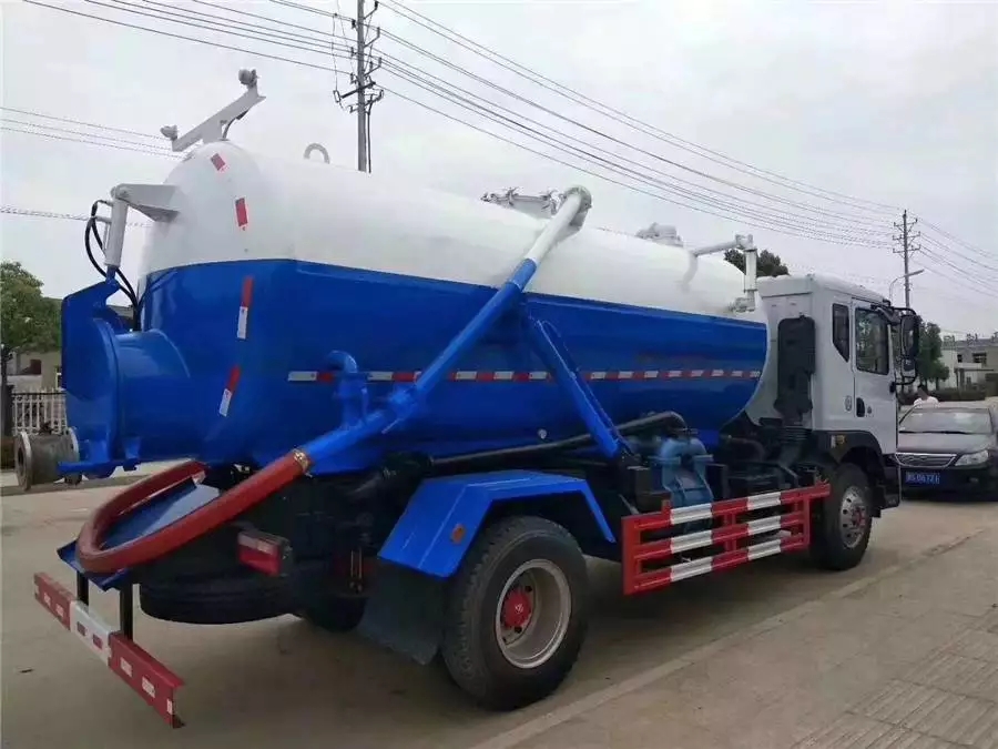 东风10方吸污车上装配置:5mm厚罐体,6mm封头,配备SK-9水循环泵,四通阀,防锈阀,油气分离器,水汽分离器,罐体带举升罐体两侧带工作平台(可选装)。一根8米102mm吸污管,量管,尾部一个100球阀,后尾部小盖液压开启!