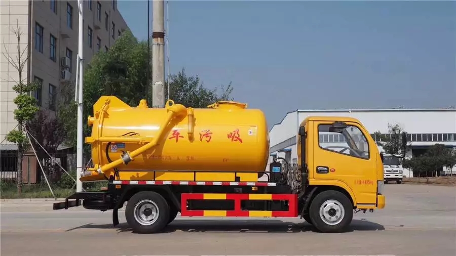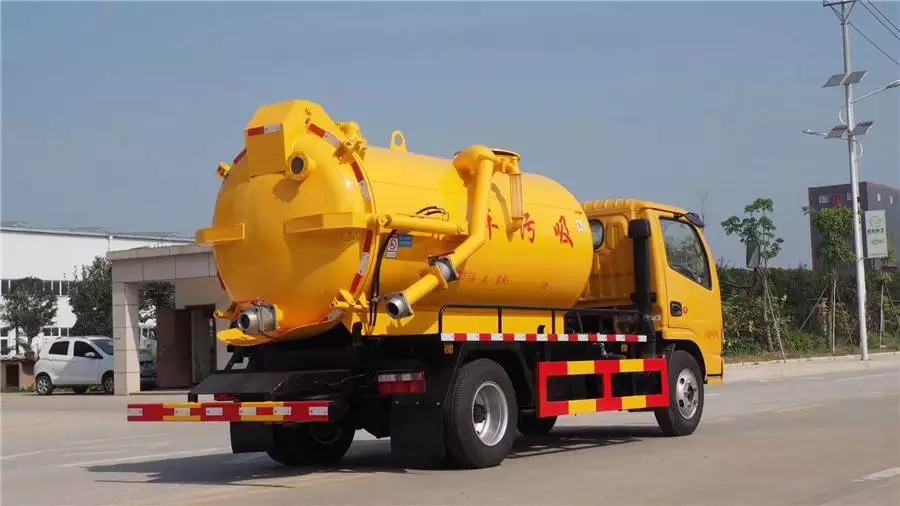 东风多利卡3方蓝牌小型吸污车罐体形状为圆柱形,采用武钢5mm厚优质碳钢钢板,罐体前部带吸污窗,洗手装置,举升装置,吸污管5米一根,罐体多种颜色选择,其余按厂内标准配置制作。随车配置大功率真空吸污泵和优质液压系统,罐体封头一次压铸成型、罐体可后开、双顶自卸。罐内污物可通过后盖直接倾倒,具有真空度高(比吸粪车的吸力更大)、吨位大、效率高、用途更广泛的特点。(垂直吸程:≥8 m,工作压力:8500Pa,理论抽速:52L/S,轴功功率:≤5kw,进排气口径:50mm,抽满罐时间:<5 min,排满罐时间:<4min。吸污车采用大功率真空泵,一次压铸成型的封头-,加厚的抗压罐体,双顶液压系统。