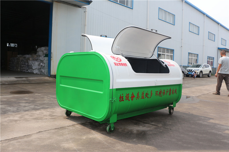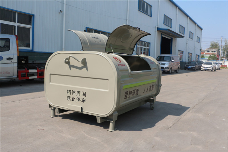 4.箱体Q235碳钢,侧板实际厚度mm:1.8/2.5,垃圾箱前后门主骨架采用50*30*1.5mm厚Q235方管,底部槽钢100*50*2mm矩形方筒,底板采用两根50*30*1.5mm方管及一根锁紧方管(40*40*1.5mm),箱体前挂钩采用3cm直径钢筋