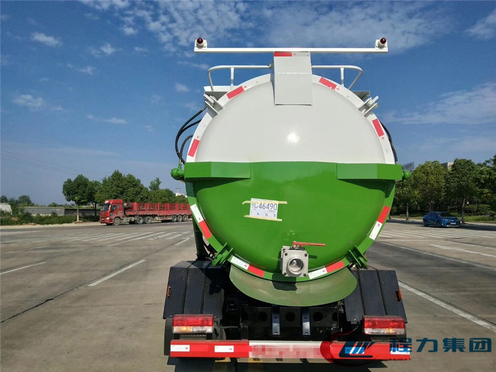 罐体内分上、下两层,下层为固液分离后污水收集箱,污水箱两头高,中间低,最低端设有出水口,以保证污水排放干净,料口及后门为液压密封,上料为提升拉杆式,罐体带举升自卸功能,让排泄更彻底干净。餐厨垃圾车除了单一的运输、收集外,还可选装固液分离装置、吸污功能、罐体清洗功能等。液压系统由泵、液压阀和顺序阀以及各种功能的液压油缸、高低压管路组成。关键部件可选用原装进口,保证产品工作可靠、安全。垃圾投入口与推板之间有足够距离,推板与罐体内表面设有密封装置,避免餐厨垃圾投入过程及分离过程中溢到推板后方。