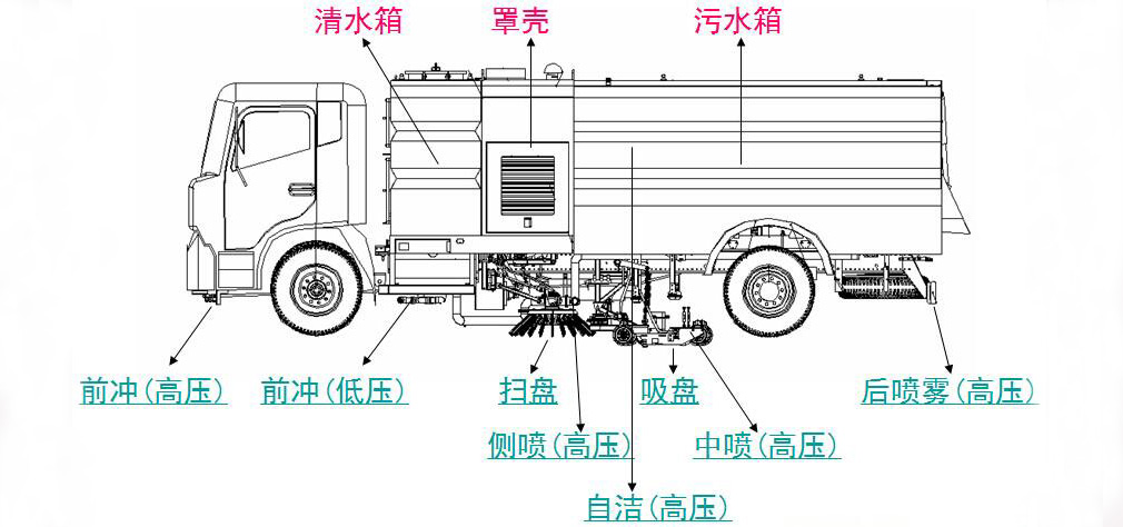 其他 | 此车为道路洗扫专用车辆,专用装置为扫刷.防护材料:Q235A碳钢,连接方式:左右侧面防护为扫刷,离地高为(mm):200,后下部防护与车架采用焊接连接,后下部防护尺寸:50×240(mm),离地面高度360mm.随底盘选装驾驶室.ABS型号/生产厂家:3631010-C2000/东科克诺尔商用车制动系统(十堰)有限公司,ABS 8/东科克诺尔商用车制动系统(十堰)有限公司, 4460046450/威伯科汽车控制系统(中国)有限公司.此整车长/前悬/轴距/后悬对应关系为(mm);9350/1400/5800/2150,,8850/1400/5300/2150,8550/1400/5000/2150,8250/1400/4700/2150,8050/1400/4500/2150,7750/1400/4200/2150,7500/1400/3950/2150,7350/1400/3800/2150,9350/1430/5800/2120,8850/1430/5300/2120,8550/1400/5000/2120,8250/1400/4700/2120,8050/1430/4500/2120,7750/1430/4200/2120,7500/1430/3950/2120,7350/1430/3800/2120.选装不同外形图片. |