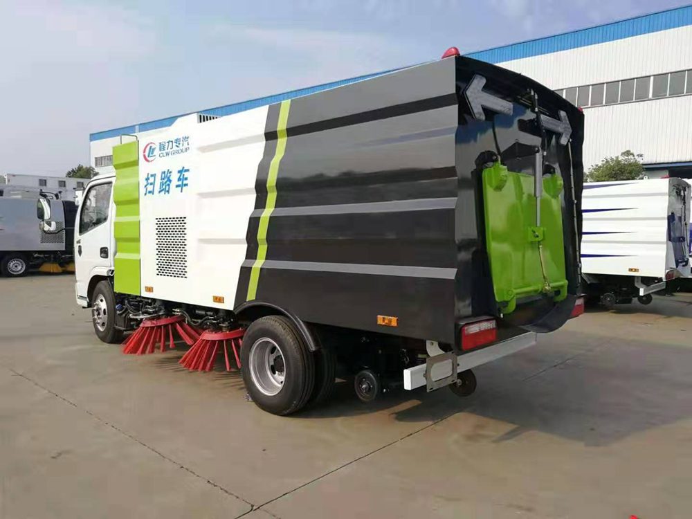 采用吸扫混合的方式收集垃圾,湿式除尘、电液控制,液压倾翻卸料的作业方式对路面进行清扫作业。